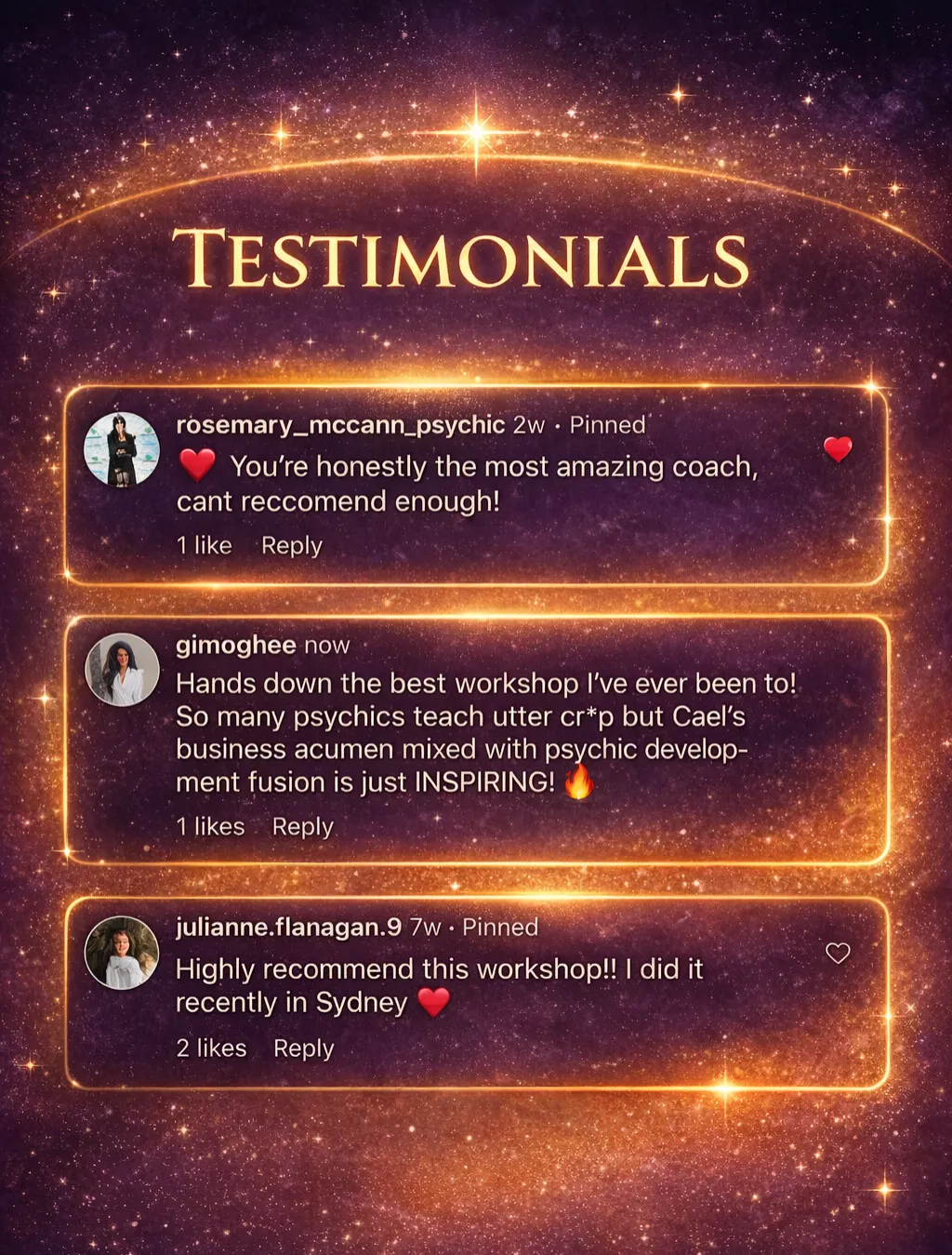 ✅ I speak live on stage to audiences of 300+ around the globe healing and teaching.